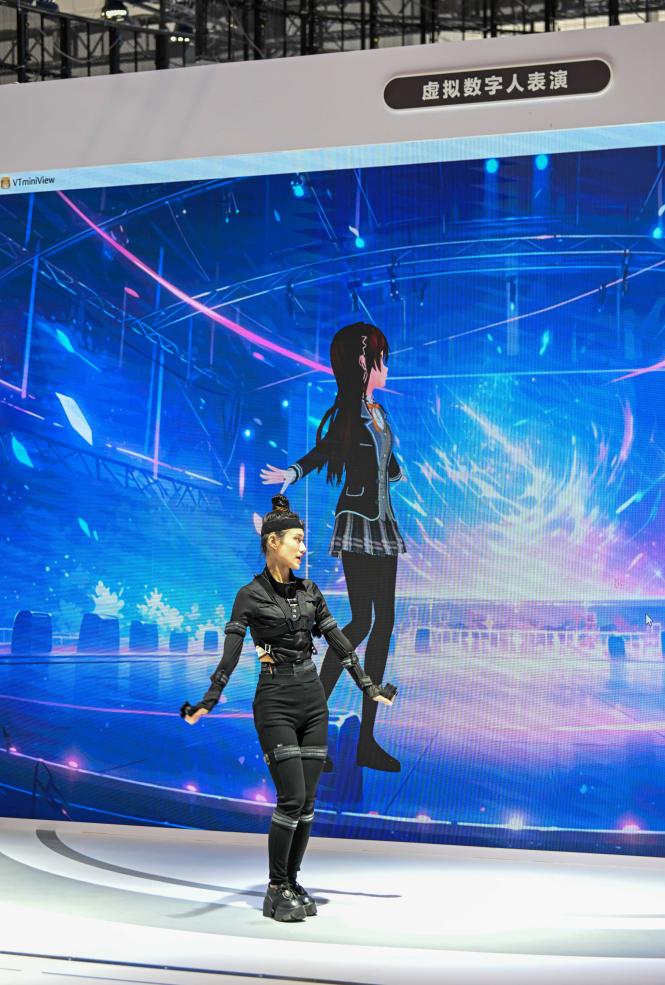 在中国电信股份有限公司天津分公司展台,真人舞者身穿智能装备,每做一个舞蹈动作巨型屏幕上的数字人都能实时精准再现,就连舞者的面部表情都可以精准模仿……目前,由真人扮演驱动或人工智能驱动的数字人已被中国旅游行业广泛应用。