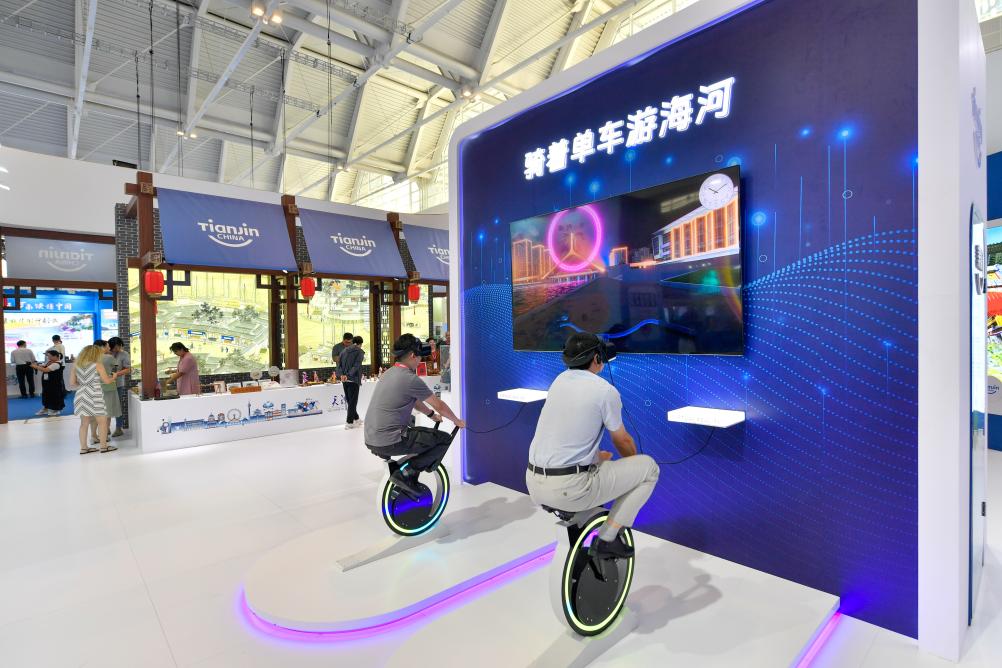 新华社天津9月3日电(记者栗雅婷、宋瑞)头戴VR设备,脚踩单车,游客仿佛置身海河沿岸,可以一边骑行一边欣赏海河风光;“任意门”轻轻一拉,美丽景致“扑面而来”……正在中国天津举行的第十三届中国旅游产业博览会上,数字技术加持的文旅产业“科技范儿”十足。