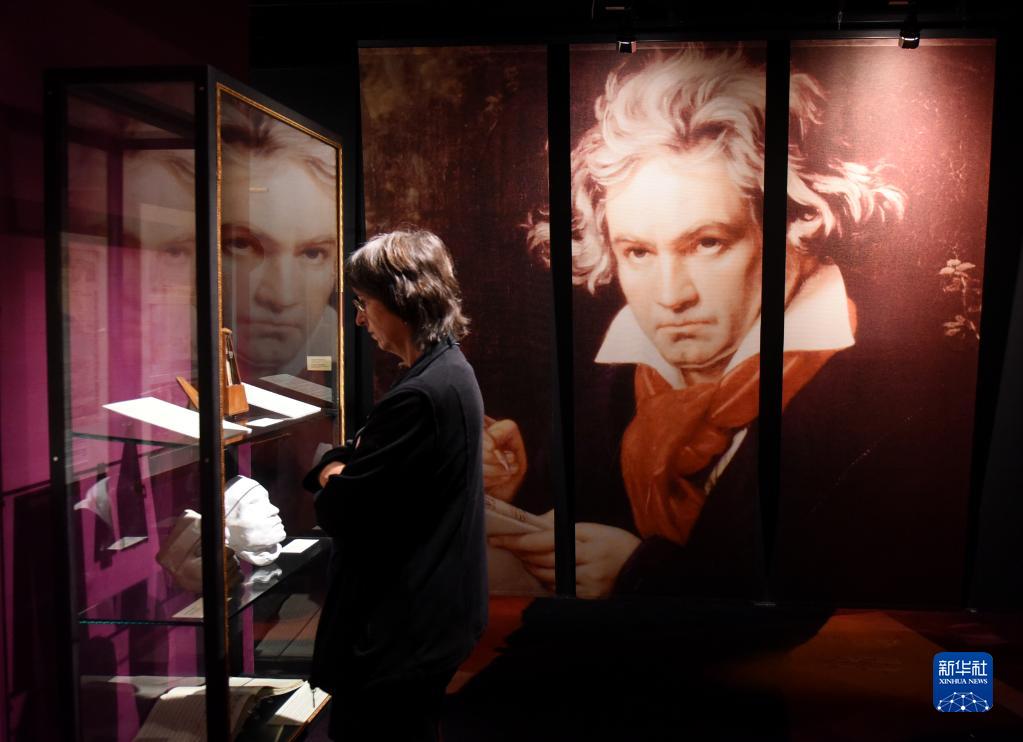 9月2日,一名观众在奥地利维也纳“音乐之家”贝多芬展厅参观展品。