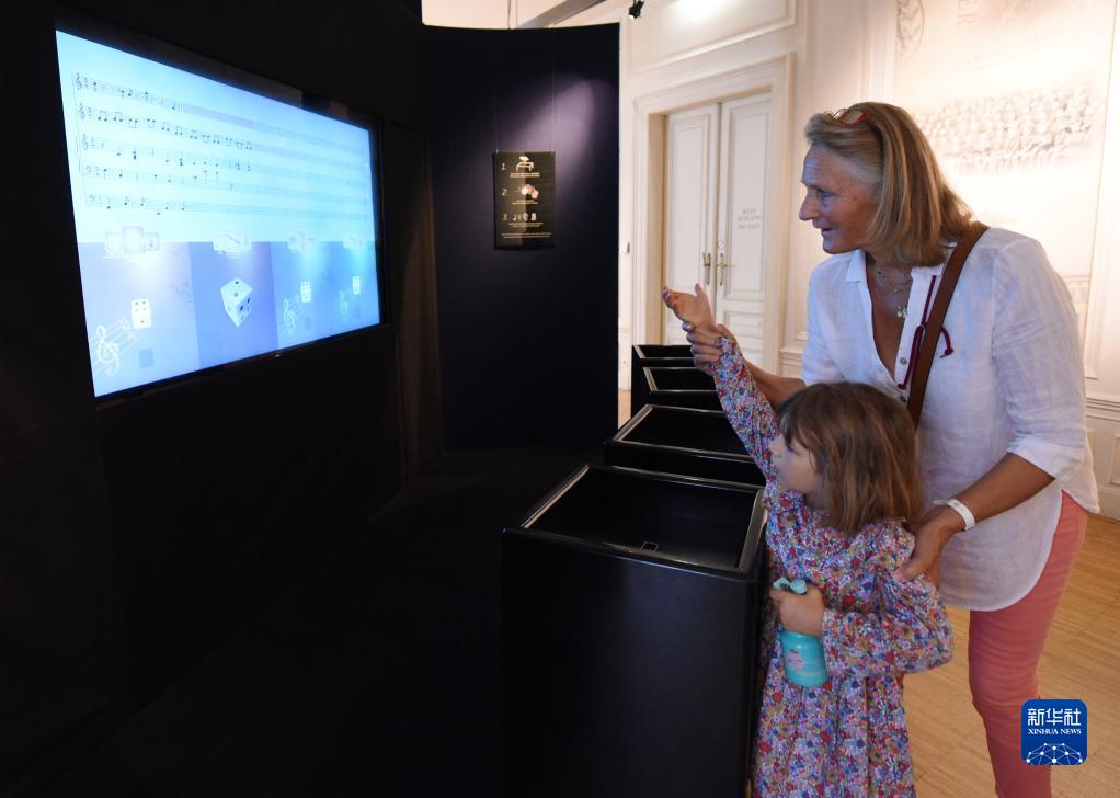 9月2日,在奥地利维也纳“音乐之家”,观众通过掷骰子游戏的交互方式体验乐曲创作。