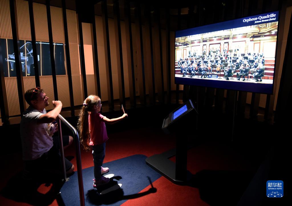 9月2日,观众在奥地利维也纳“音乐之家”模拟体验指挥维也纳爱乐乐团。