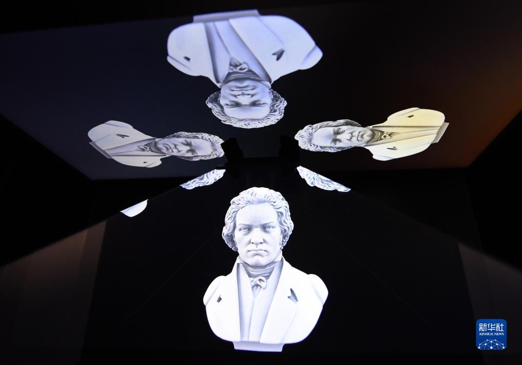 这是9月2日在奥地利维也纳“音乐之家”拍摄的贝多芬全息影像。