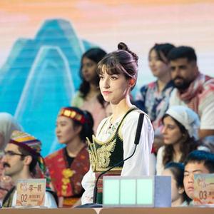 9月2日,塞尔维亚选手李一帆参加第22届“汉语桥”世界大学生中文比赛总决赛。