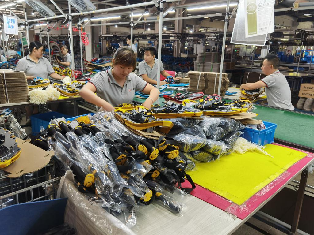 新华社宁波9月3日电(记者顾小立、邱世杰)走进浙江省宁波市宁海县深甽镇兴达旅游用品有限公司的生产车间,刚被搬下流水线的运动杖在操作台上堆得满满当当,工人们正在进行最后的组装检查,将所有货品打包完成后,发往客户手中。
