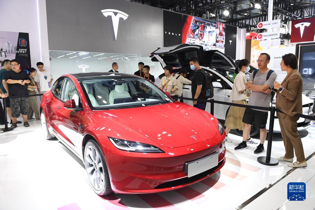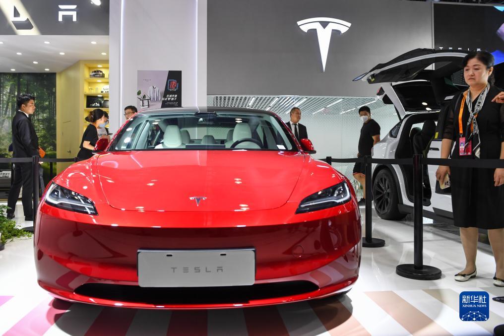 2023年中国国际服务贸易交易会9月2日开幕当天,连续第四年参展的特斯拉携刚刚发布的新款Model 3车型亮相,新车全球首秀吸引不少观展嘉宾试乘体验。