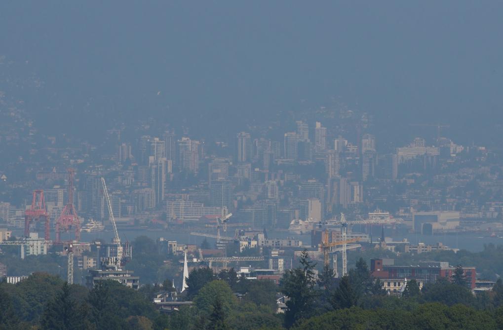 8月26日,加拿大温哥华市被烟雾笼罩。受野火产生的烟雾影响,位于加拿大西部大不列颠哥伦比亚省的温哥华市空气堪忧。(新华社发,梁森摄)