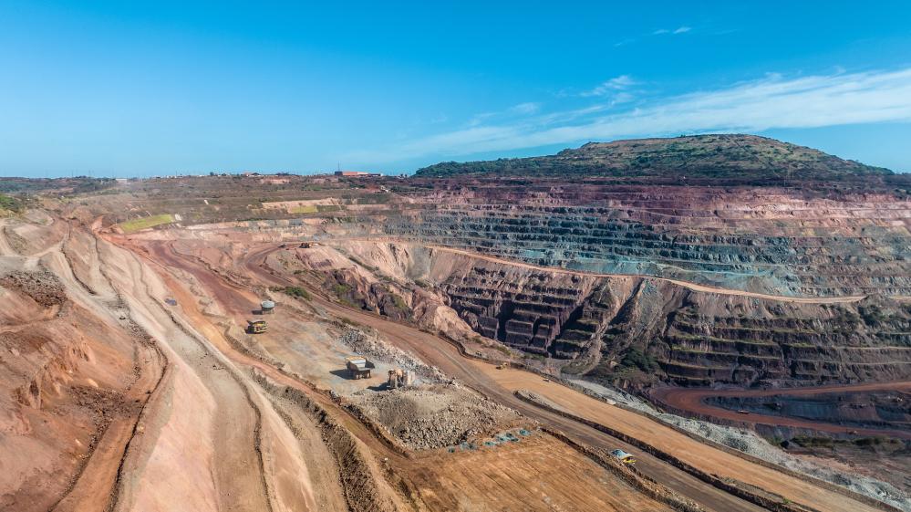 这是8月3日在巴西帕拉州卡拉雅斯采矿综合体拍摄的露天铁矿开采现场(航拍照片)。(新华社记者王天聪摄)