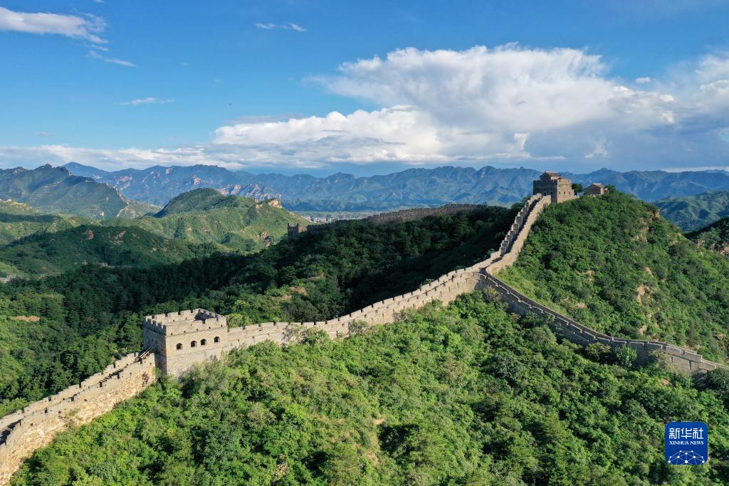 金山岭长城风光(8月31日摄,无人机照片)。