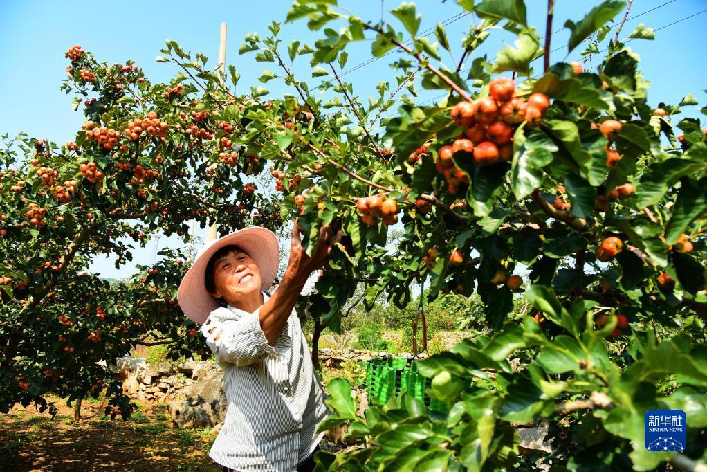 9月5日,山东省枣庄市山亭区水泉镇柴山前村农民在采摘山楂。