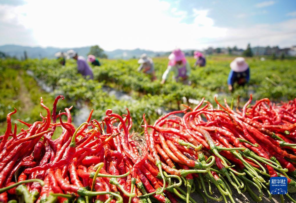 9月5日,贵州省黔东南苗族侗族自治州丹寨县兴仁镇台辰村村民在采收辣椒。