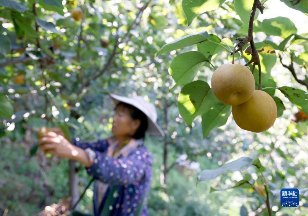 9月5日,果农在贵州省汇川区团泽镇三联村水果种植基地采摘鲜梨。