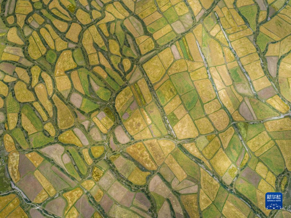 这是然乌湖畔的农田(9月4日摄,无人机照片)。