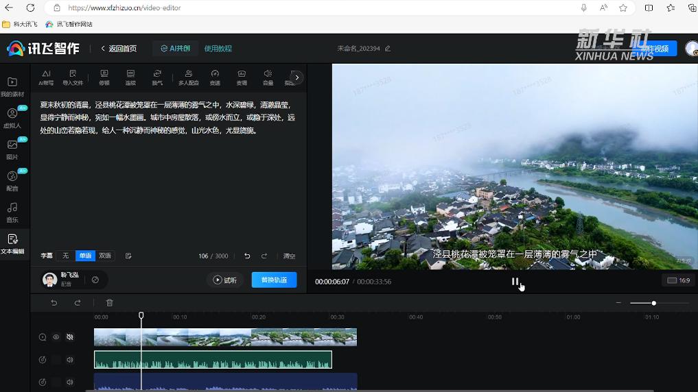 AIGC内容创作平台通过输入文稿,选定虚拟主播,一键完成音视频内容的输出。