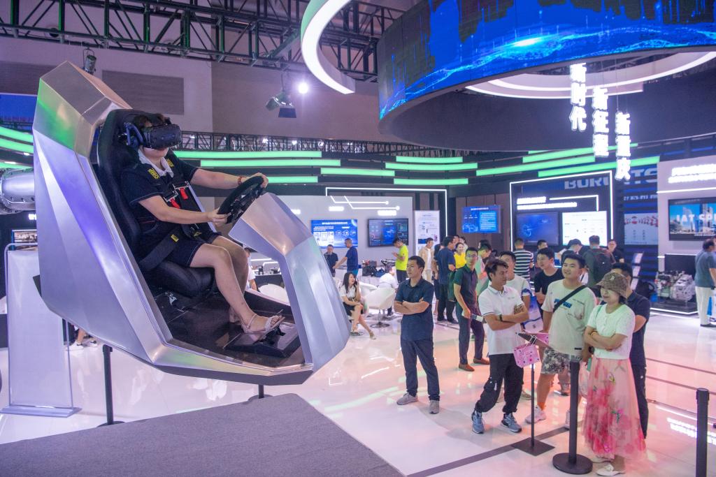 观众在2023智博会上体验“车载XR智能座舱”。新华社记者唐奕 摄