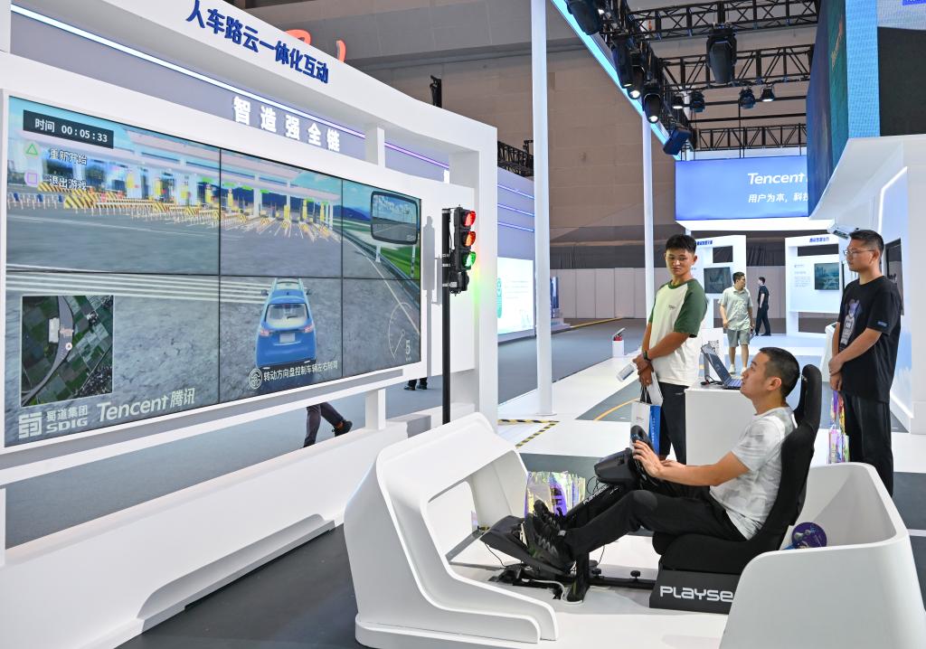 观众在2023智博会上体验人车路云一体化互动。新华社记者王全超 摄