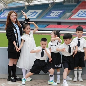 浙江省杭州市丁信幼儿园教师徐元凤(右一)与孩子们一起迎亚运。受访者供图