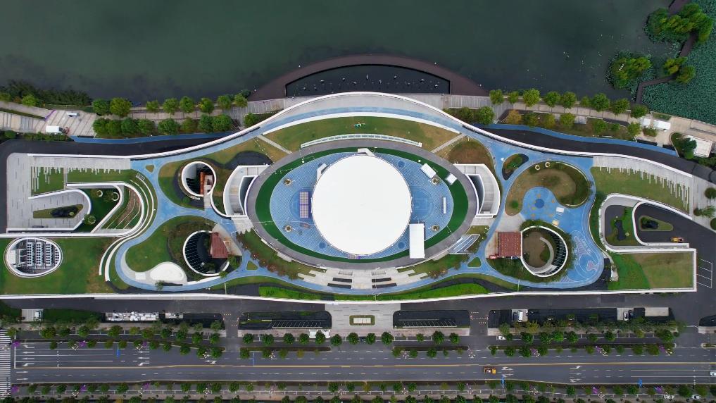 湖州德清地理信息小镇篮球场俯瞰图。(德清县委宣传部供图)