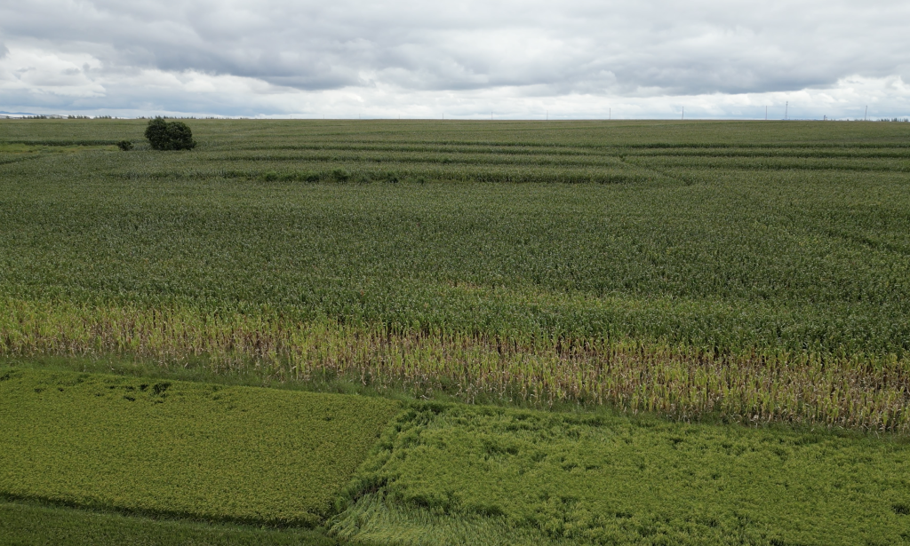 榆树市农业技术推广服务中心副主任何亚荣说,“旱田区只要玉米没有没穗的,水撤得及时,对后期的产量影响都不会十分严重。但是随着雨水的浸泡、多日的降雨,空气湿度比较大,所以为了防止它染病,我们就指导农民要喷一些药剂进行防治。像现在看,田间有褐斑病的发生,那么我们就要指导农户喷施‘吡唑醚菌酯’兑‘井冈霉素’。车辆可以进地的就用高架车,进不去的、水撤得比较晚的,有的地垄沟还有水或者是湿度比较大的,我们用无人机进行喷雾。”