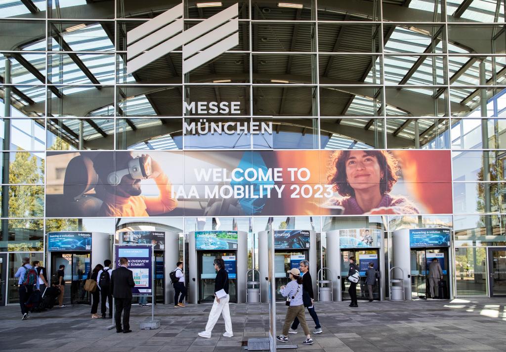9月5日,在德国慕尼黑,人们走入2023年德国国际汽车及智慧出行博览会会场。新华社记者张帆摄