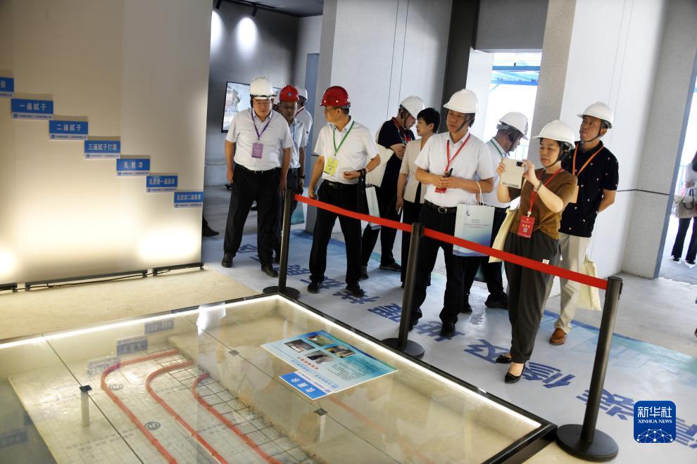 9月7日,与会者在由中建二局承建的青岛滨海国际中心项目工地观摩、学习。