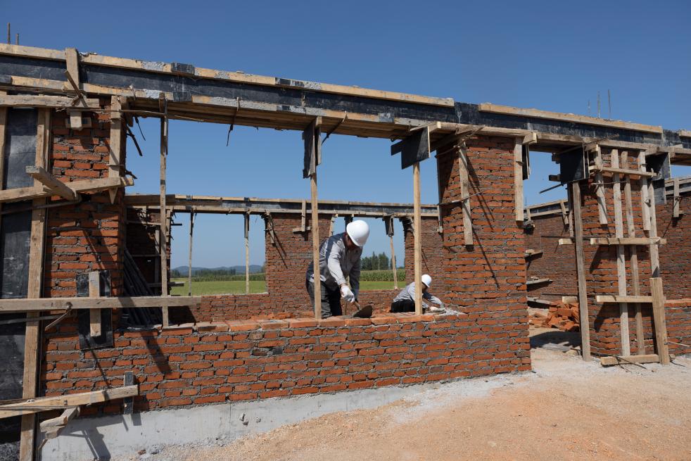 近日,在黑龙江省尚志市老街基乡,施工人员正在作业。新华社记者 谢剑飞 摄