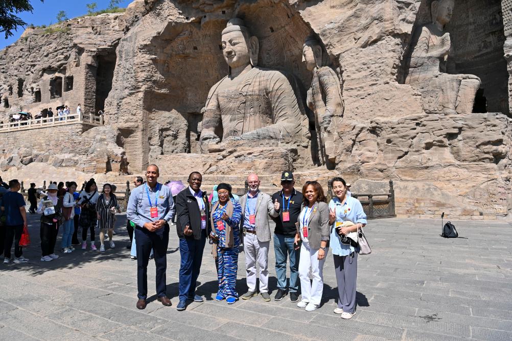 使节们首先来到云冈石窟。始建于1500多年前的云冈石窟,以造像气魄雄伟、内容丰富多彩见称,也是佛教艺术与石刻艺术相融合的一座文化艺术宝库。