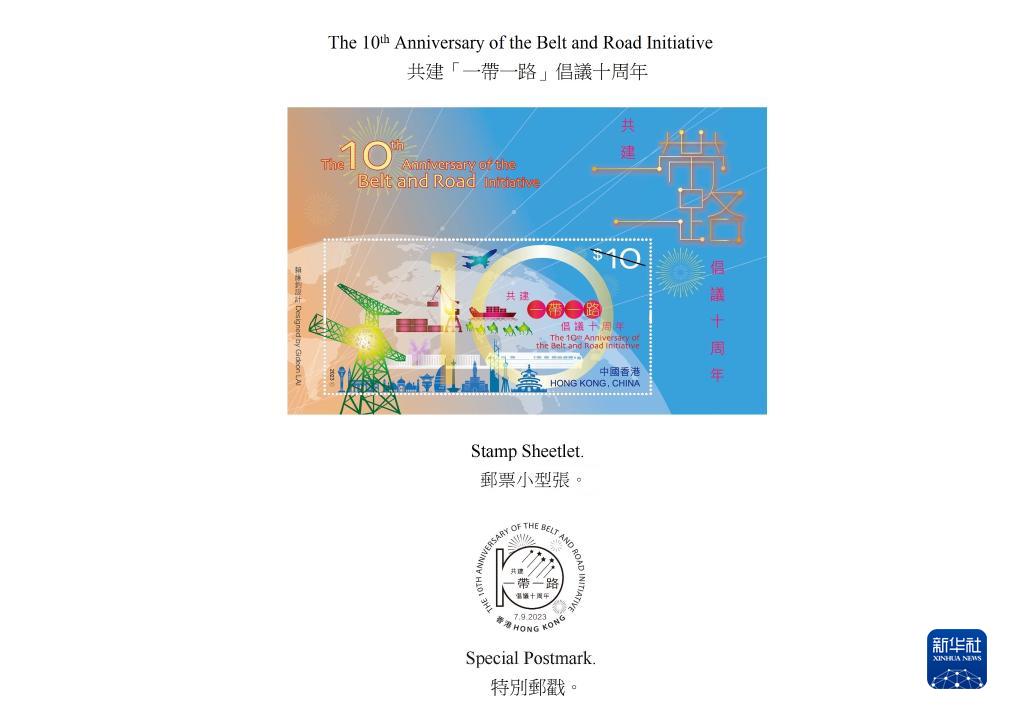 这是“共建‘一带一路’倡议十周年”纪念邮票小型张和特别邮戳。新华社发(香港特区政府新闻处供图)
