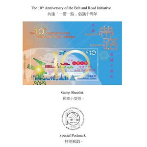 此外,中国邮政、香港邮政和澳门邮电以此题材联合发行小型张本票,内含三家邮政机关分别发行的邮票和小型张,庆祝共建“一带一路”倡议十周年。