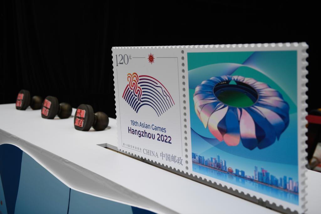 2019年5月18日,杭州亚运会首套个性化专用邮票的模型在西湖景区展示。新华社记者 黄宗治 摄