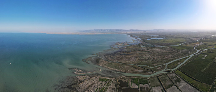 8月31日拍摄的新疆博斯腾湖(无人机全景照片)。新华社记者 金皓原 摄