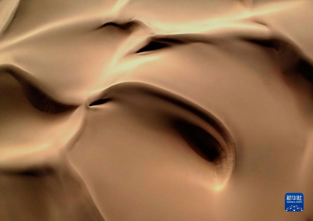 这是9月7日在新疆喀什地区麦盖提县N39°沙漠旅游景区拍摄的沙漠风光(无人机照片)。