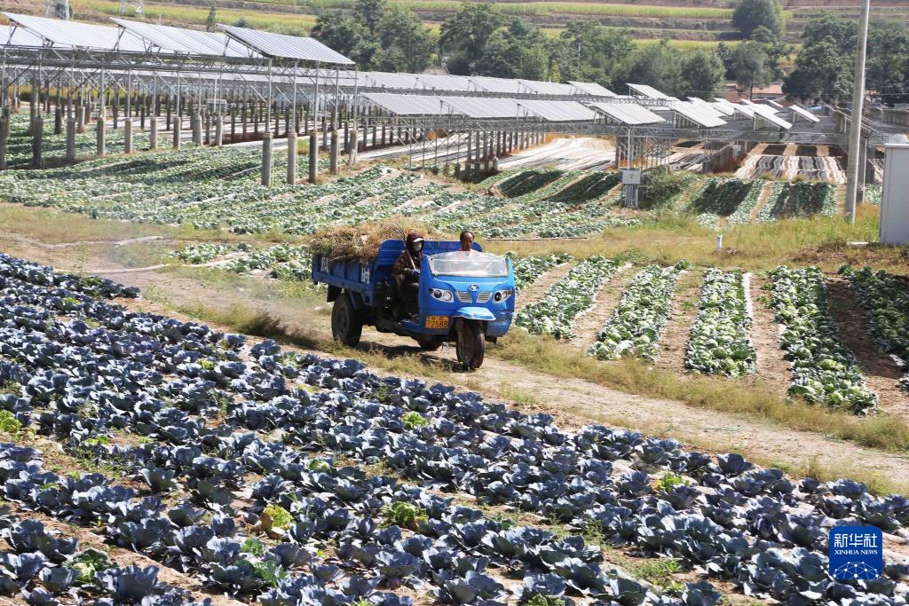 9月9日,农民在通渭县榜罗镇四新村光伏农业产业示范园的蔬菜地里劳作。