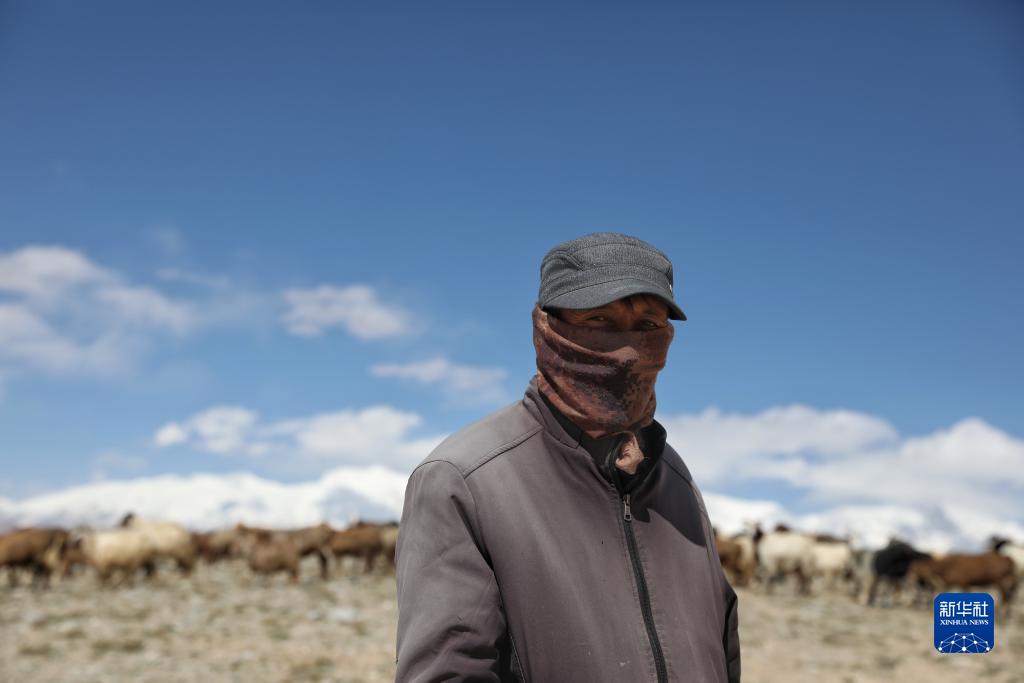 今年39岁的塔合曼乡萨热拉村牧民库尔班艾里·买达赛因赶着替人代牧的500多只羊走在草场上(9月6日摄)。