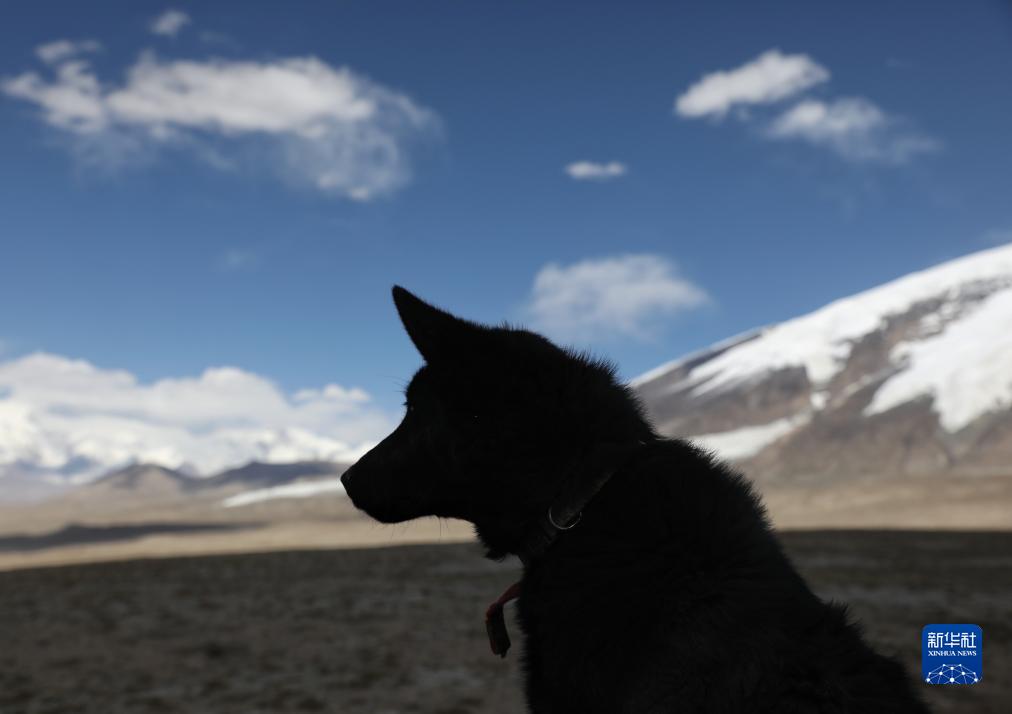 一只牧羊犬“黑狼”在远远地看着羊群(9月6日摄)。