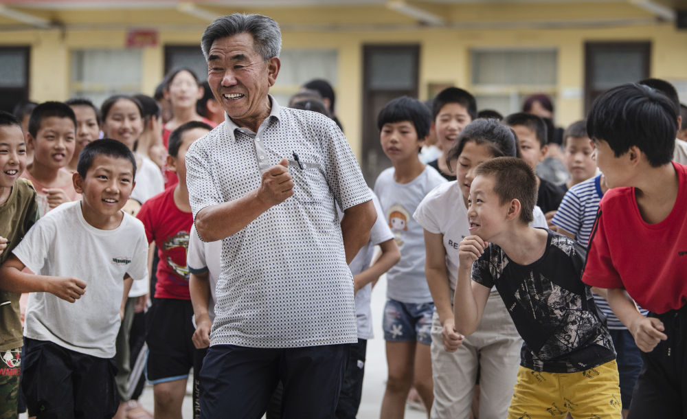 ↑2021年8月6日,马维帅在“马塔留守儿童学校”教托管班的孩子们跳陕北秧歌。“马塔留守儿童学校”位于陕西省子洲县周家硷镇,创办人马维帅30年来义无反顾坚持办学。 新华社记者 陶明 摄