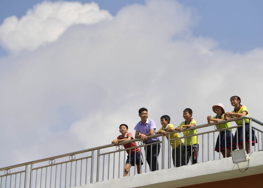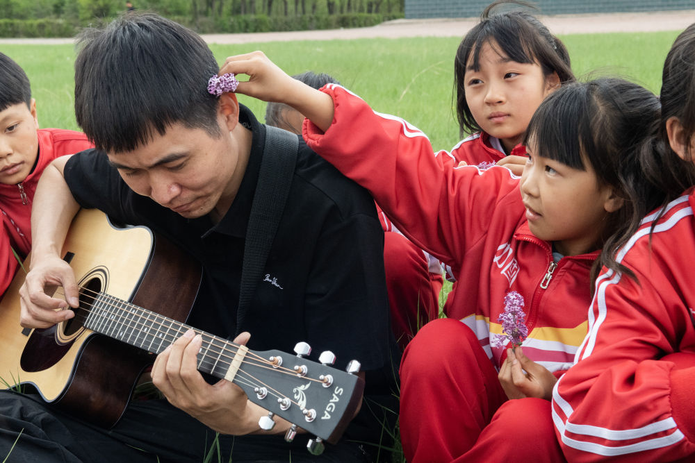 ↑2021年8月31日,在江西于都县仙下乡龙溪小学任教的朱森林和学生们聊天。2005年,朱森林从龙溪小学毕业;2014年,他回到母校,投身乡村教育事业。 新华社记者 彭昭之 摄