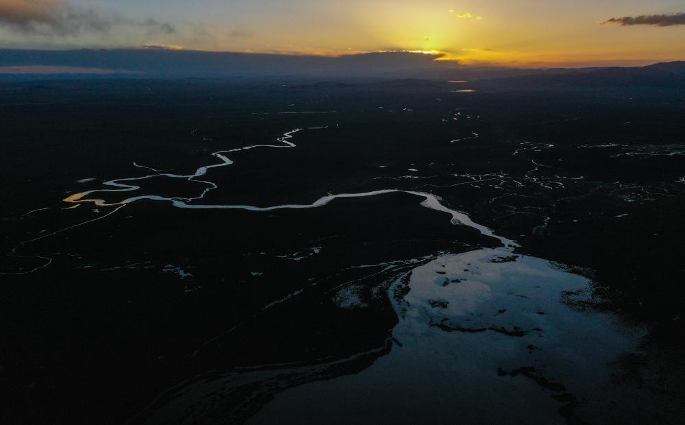 这是在四川省阿坝藏族羌族自治州若尔盖县拍摄的花湖湿地,花湖之水经黑河汇入黄河干流。新华社记者 王曦 摄