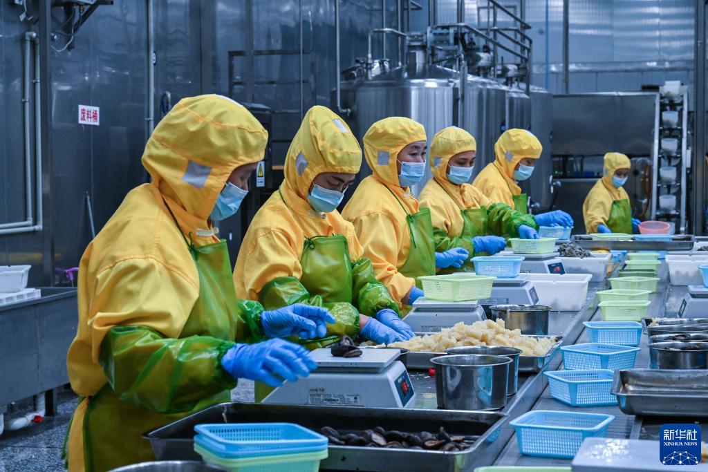 8月24日,在福建省福清市元洪国际食品产业园,工人在福清市兆华水产食品有限公司水产品预制菜加工生产线作业。新华社记者 周义 摄