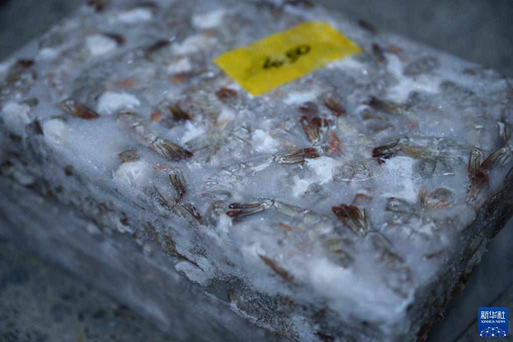 这是福清市兆华水产食品有限公司从印尼进口的冻虾(8月24日摄)。新华社记者 周义 摄