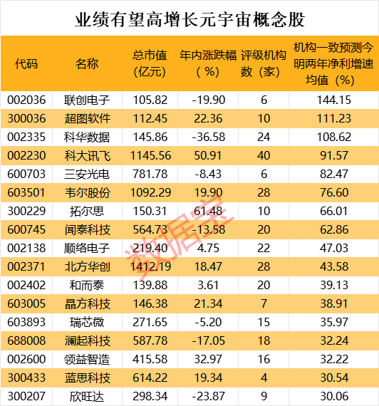 成长性方面,多只概念股被券商机构看好。数据宝统计,根据3家以上机构一致预测,17只概念股今明两年净利润增速均值有望超30%。高增长概念股中仅蓝思科技、领益智造、欣旺达3股滚动市盈率低于30倍。