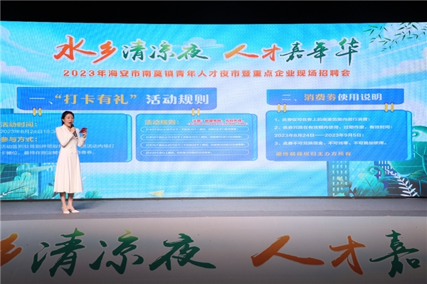 近日,江苏省海安市南莫镇举办“水乡清凉夜 人才嘉年华”青年人才夜市活动。南莫镇商会组织30余家优质企业专设招聘区,提供200多个就业岗位,各家企业化身“摊主”“挑灯揽才”,政协委员企业争相上台与大学生现场求职互动,青年才俊们穿梭在摊位中,现场咨询达500余人次。(马君)