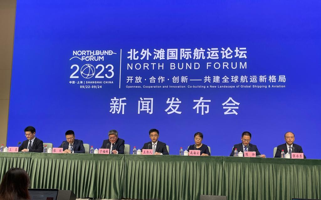 2023北外滩国际航运论坛新闻发布会现场。新华社记者 王辰阳 摄