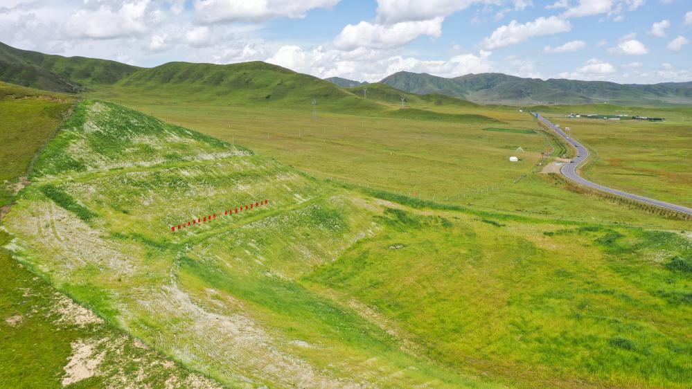 这是在四川省阿坝藏族羌族自治州若尔盖县唐克镇嘎尔玛村拍摄的治理后的坡面。新华社记者 王曦 摄
