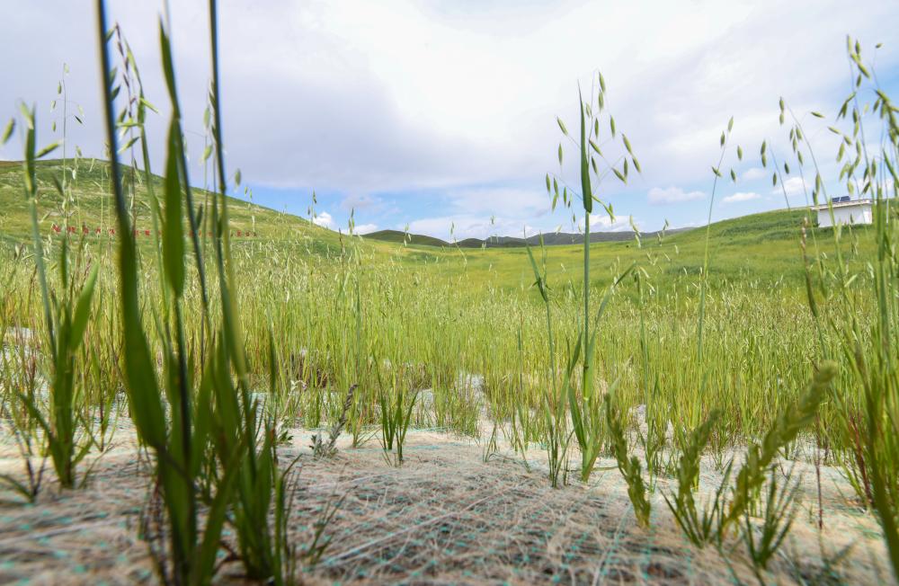 这是在四川省阿坝藏族羌族自治州若尔盖县唐克镇嘎尔玛村拍摄的治理后的坡面。新华社记者 王乙杰 摄