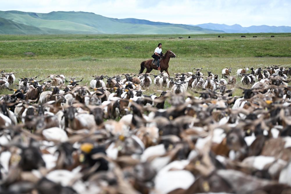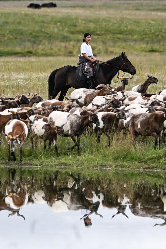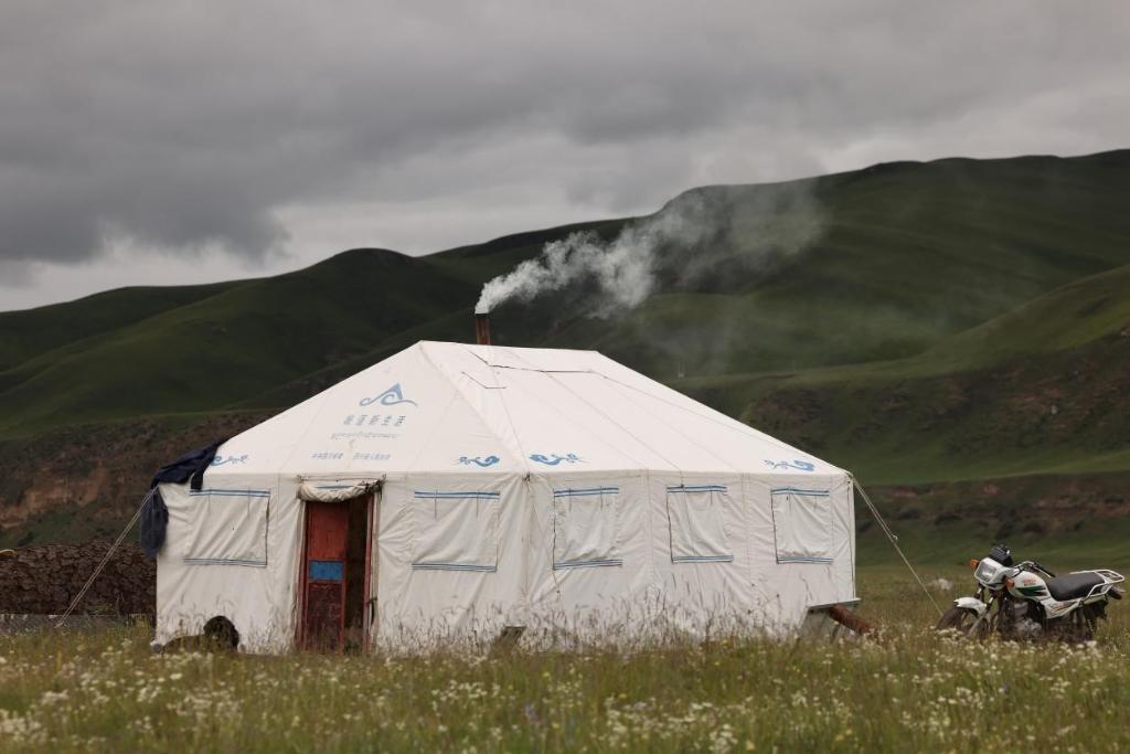 现在我们所在的牧场,是扎西曲培家的夏季牧场,他们管它叫夏窝子。天气渐渐凉了,到十月份的时候,他们就要转移到冬季牧场,也就是冬窝子了。在夏窝子,他们用太阳能电池板发电,存储到蓄电池里,家里的照明、手机充电、牛奶分离器等日常用电都没有问题。妻子挤牛奶的时候,扎西曲培就出发去放牧了。放牧有的时候骑马,有的时候骑摩托车,日出而作,日落而息。现在治安好了,生态也好了,不用担心有人偷盗牲畜,担心的主要是狼。凭借多年的放牧经验,他能感觉到羊群附近有没有狼,如果没有,他中午就放心地回家吃饭。如果感觉有潜在的危险,他就吃点自己带的干粮,一直看护着羊群。