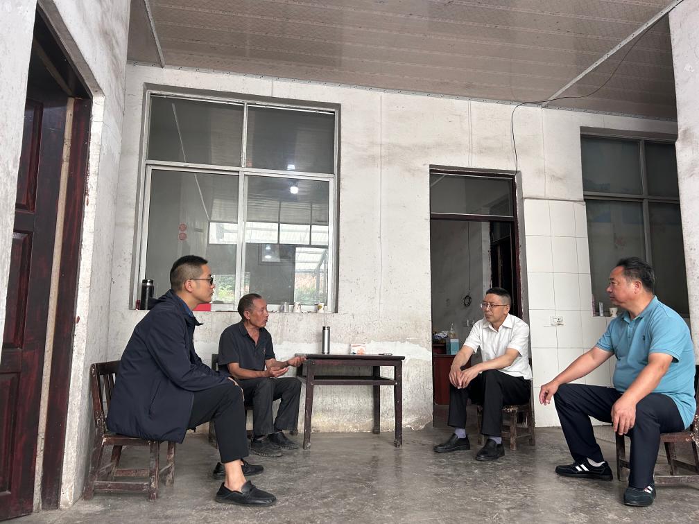 城口县高楠镇解事员杨常发(右二)和工作人员深入农户调解纠纷。(罗小芳 摄)