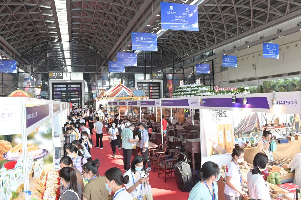 中国-东盟博览会线下实体展吸引人们逛展、选购产品。(资料图片)