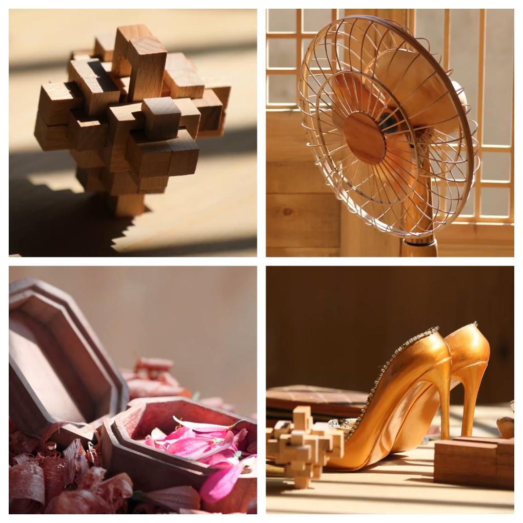 木质粗砺,却在这名乡村小木匠的巧手中,变成了细致精巧的工艺品。龙舟、高跟鞋、首饰盒、电风扇,安旭的设计涵盖方方面面。从制作小物件开始,他逐步摸索,不断提升自己的能力,如今还将榫卯技艺运用到木质建筑工程中去。