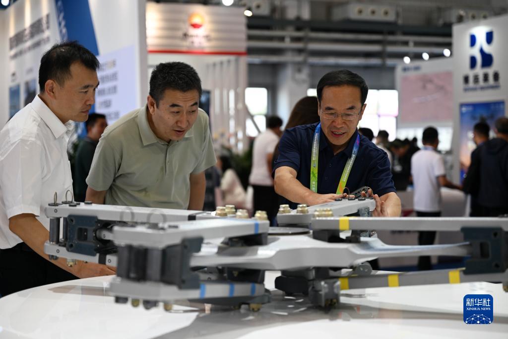 9月14日,参展人员在第六届中国天津国际直升机博览会会场参观交流。