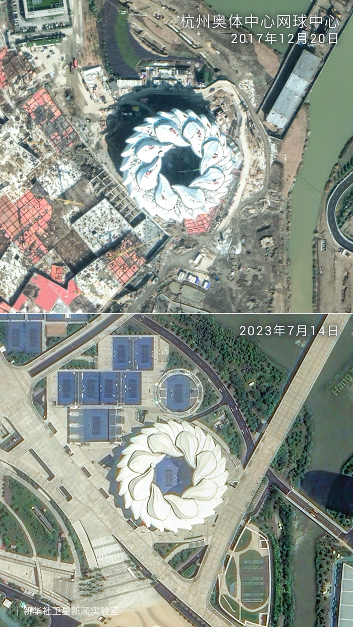 ↑这是卫星拍摄的杭州奥体中心网球中心。